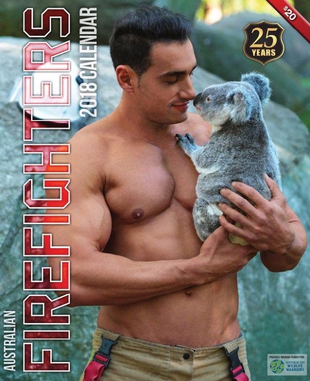 Голи до кръста пожарникари от Австралия се снимаха с животни за благотворителен календар за 2018 г., информира в. "Дейли мейл". Сред зверчетата има и коала.