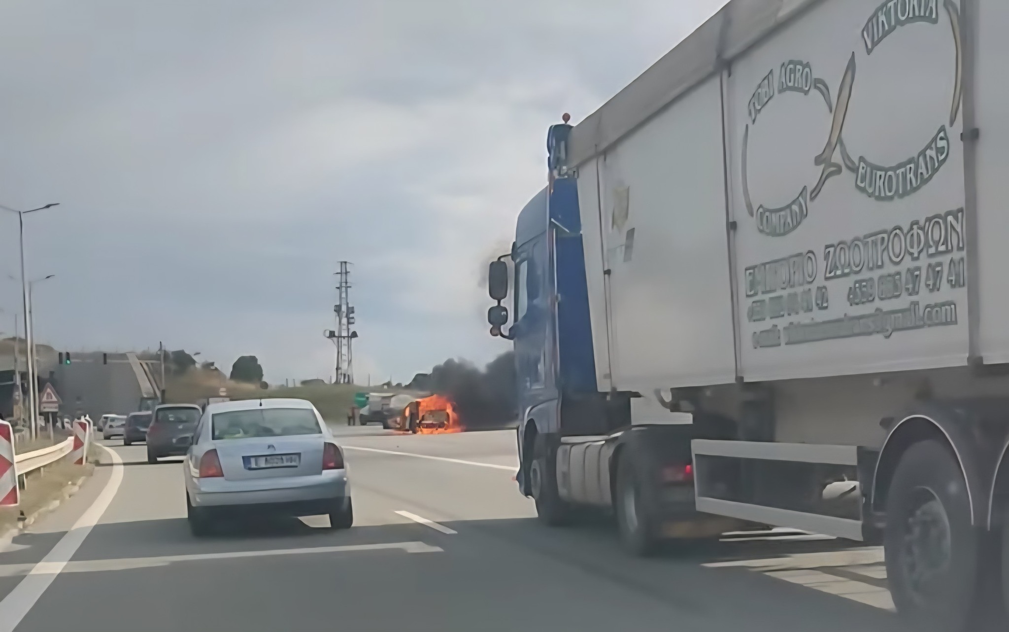 Инцидентът е станал този следобед, а причината, довела до него, е техническа неизправност. Шофьорът на леката кола е направил опит да угаси огъня собственоръчно, но не е успял.
