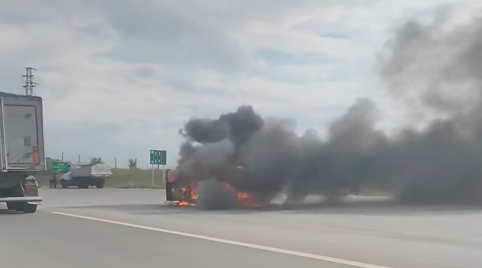 Автомобил изгоря преди третия тунел на АМ „Струма“ в посока Перник (СНИМКИ)
