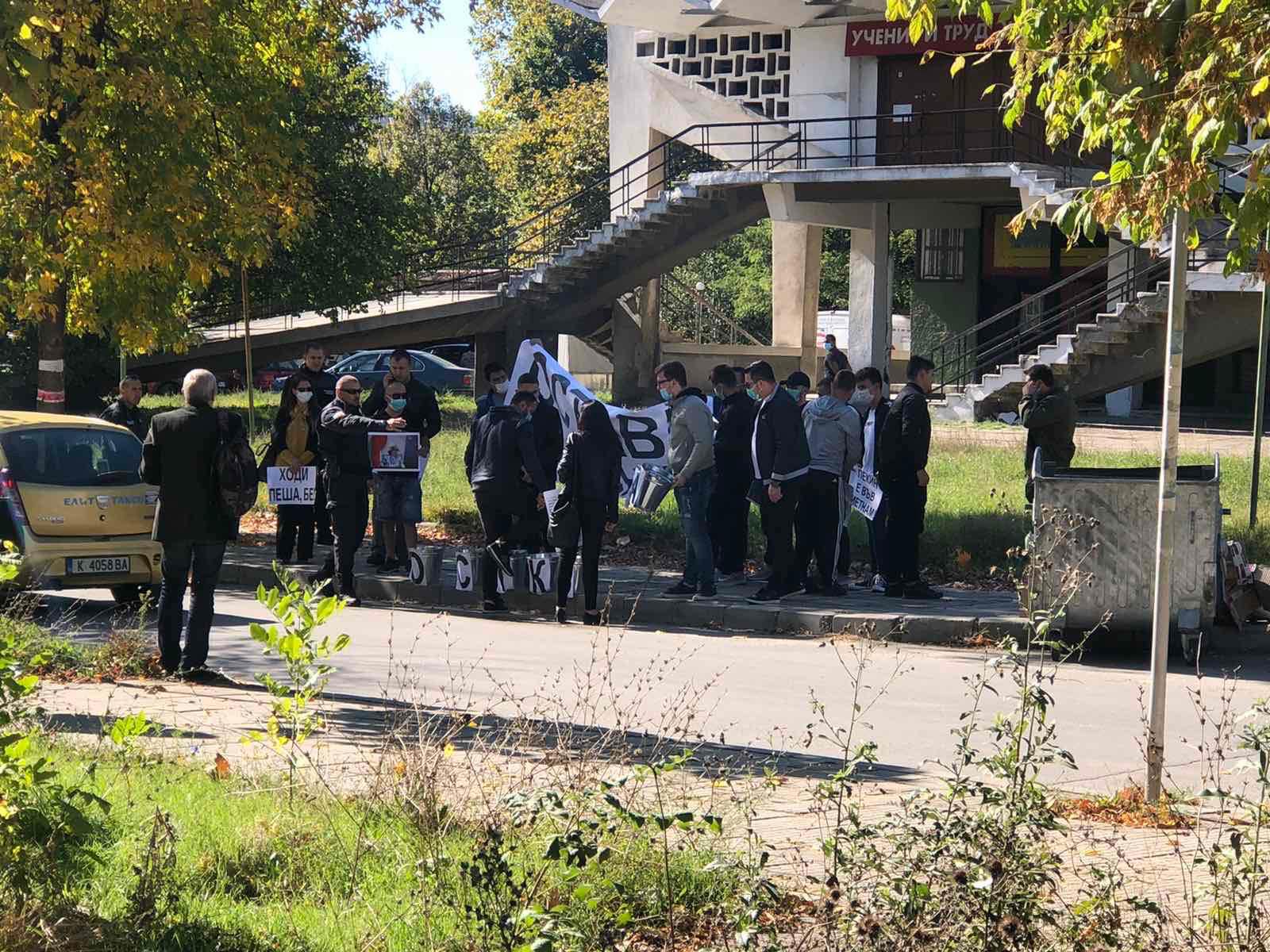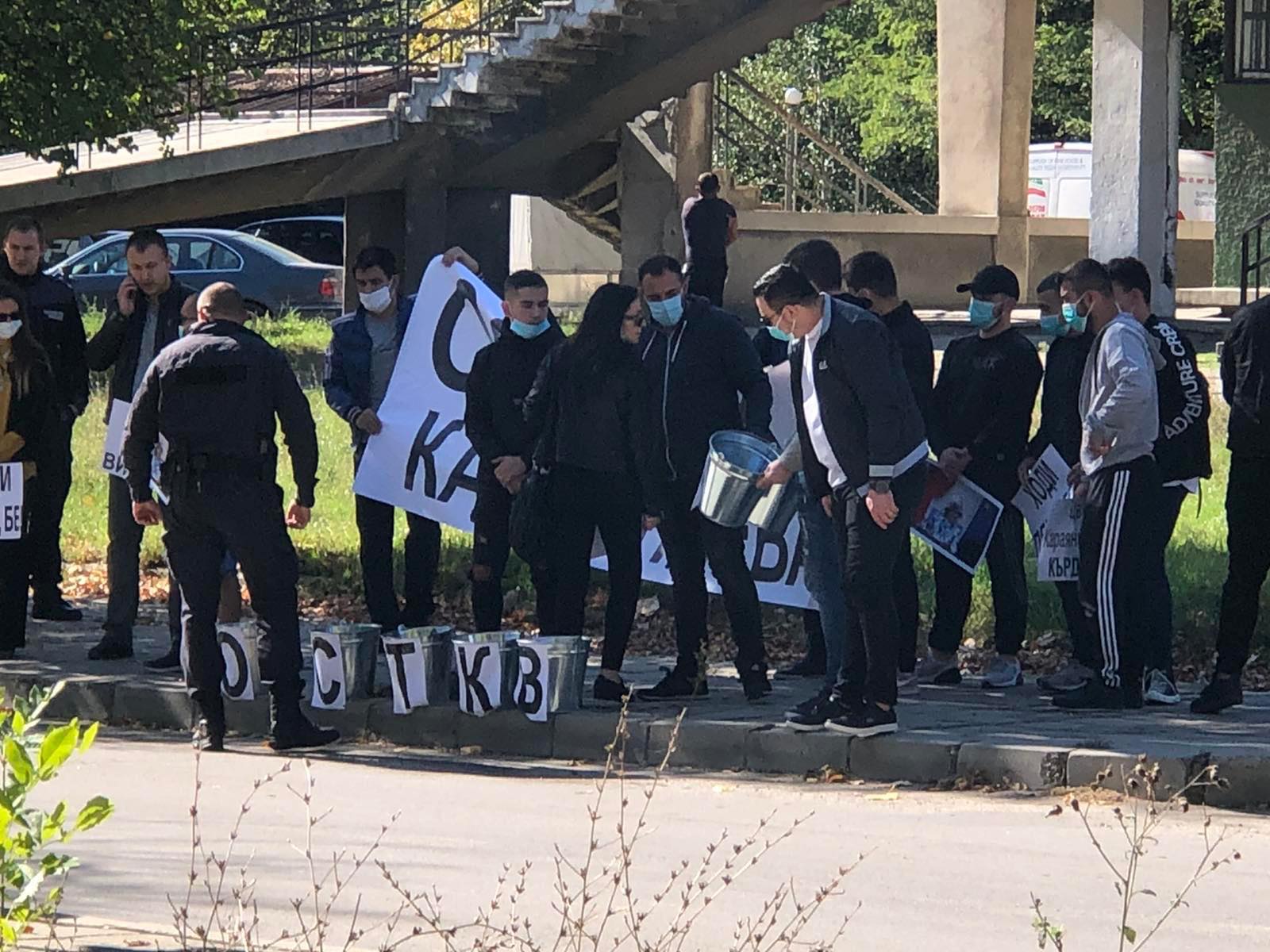 10-12 души, привърженици на партията на Доган, опънаха транспаранти като метежниците на Бабикян с да саботират първата копка на отдавна чакана за целия град спортна зала.