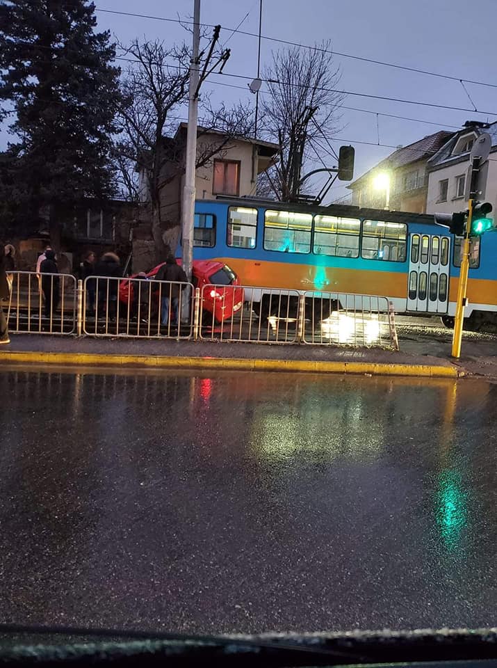 Очакваният снеговалеж създаде и предвидимите пътни проблеми на столичани. Преди минути трамвай отнесе кола на бул. "Овча купел" и ул. "Народно хоро". В социалните мрежи бяха качени кадри от инцидента, които веднага предизвикаха ожесточена дискусия.