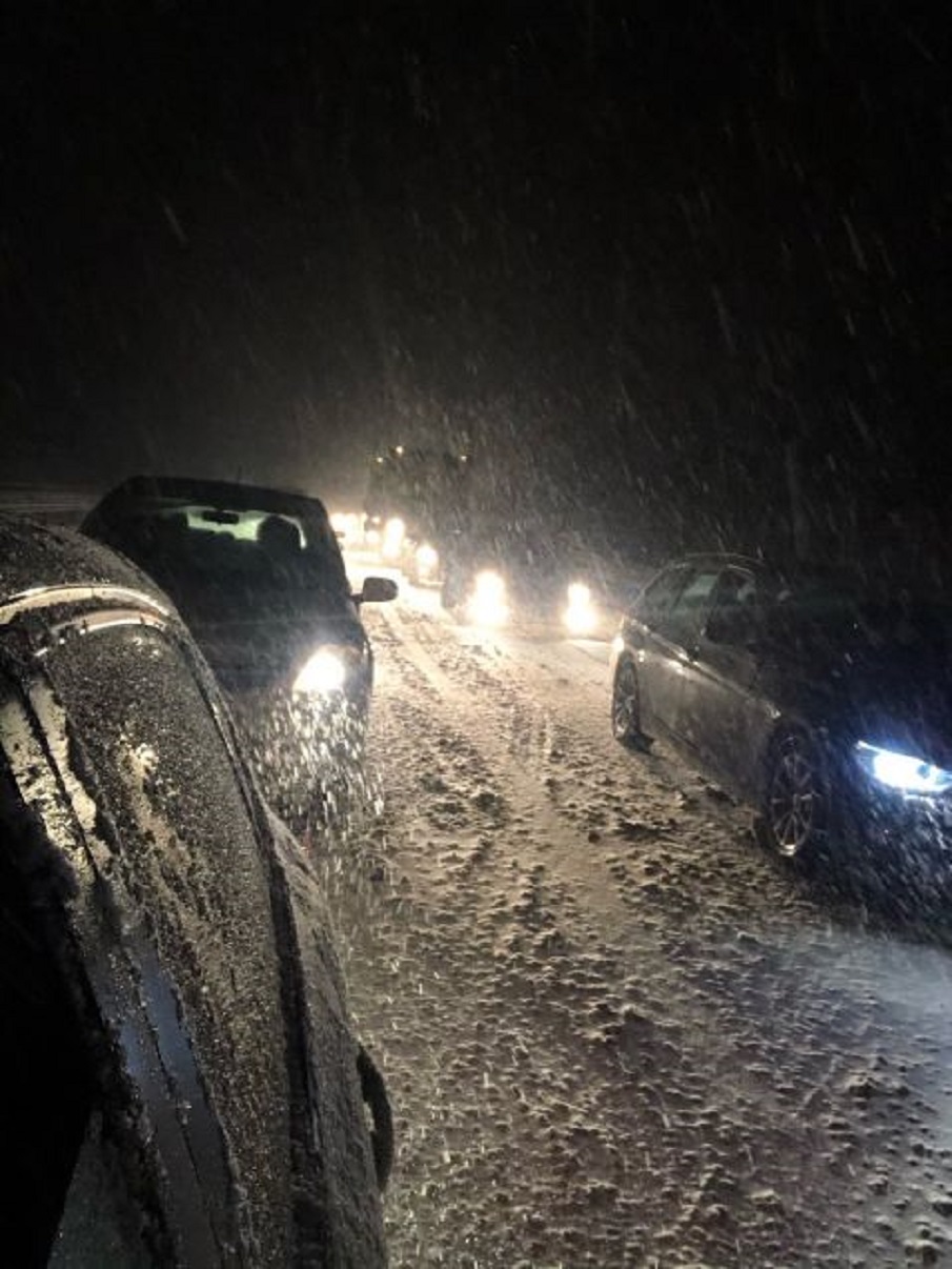 Температурата на въздуха в района е минус 4 градуса, пътната настилка е хлъзгава заради валежите от сняг.