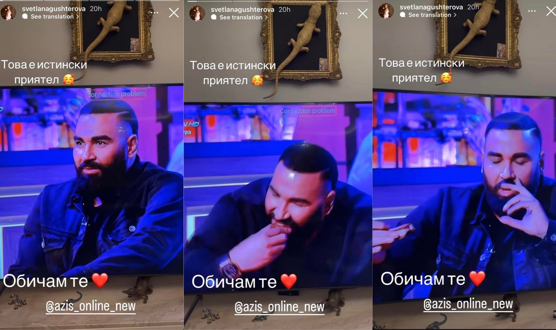 Светлана Гущерова явно е взела страха на Азис. Поп фолк кралят премисля внимателно всяка своя крачка или дума, за да не разгневи добрата си приятелка. Това пролича по време на гостуването на изпълнителя на "Мотел" в шоуто на Цитиридис.