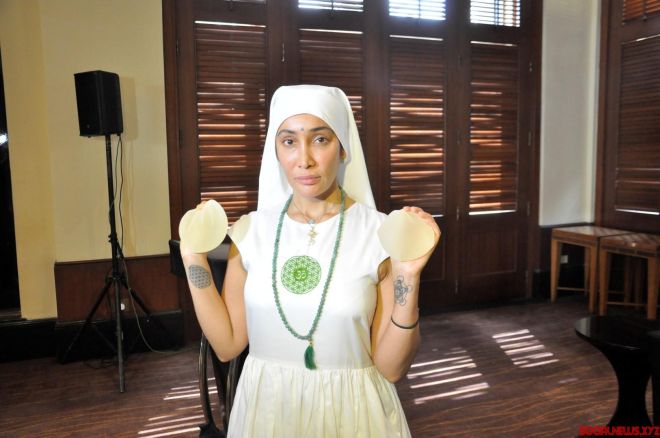 Кулминатията на събитието бе демонстрация на гръдните й импланти, след изваждането им.