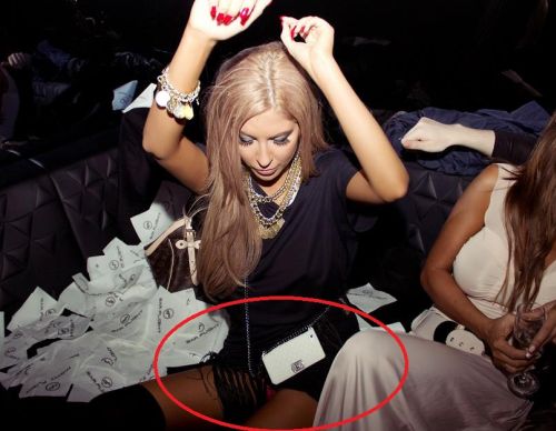 Изпълнителката така е била седнала на сепарето, че дотолкова си е разкрачила краката, че чак розовите или червени (не може да се определи) й прашки са се показали.