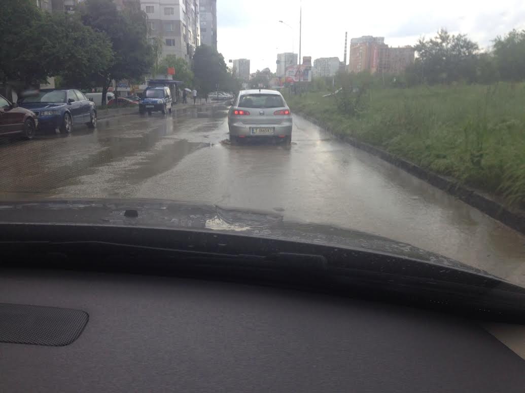 Обилни водни потоци се стичат по бул. "Трети март" и от вилната зона над квартала от бул. „Република” и ул. „Вяра”. Дъждът е придружен и от силна гръмотевична буря, на места има намалена видимост.