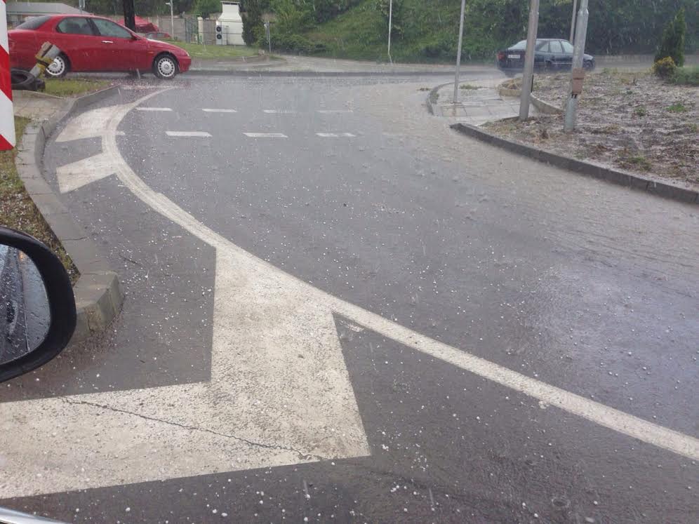 Градушка вали в района на Колхозен пазар. Част от бул. „Цар Освободител” в района под кв. „Възраждане” е частично наводнен.