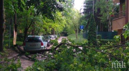 Към 22 ч. изведнъж притъмня и дъждът заваля със страшна сила. Едри капки се изляха в центъра на София, след като тъмни облаци се скупчиха над цялата столица. Гръмотевиците, пороят и силният вятър повалиха редица дървета и изпочупиха клони в централни столични квартали.