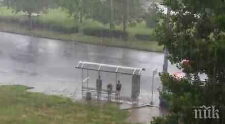 Мощна буря удави центъра на София преди минути. Дъждът се лее като из ведро. Прогнозите на синоптиците се сбъднаха и след адската жега днес буреносната стихия връхлетя столицата.