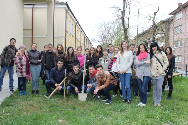С общи усилия ученици и учители положиха успешно капсула на времето и засадиха Юбилейно дърво (явор) в двора на Гимназията.