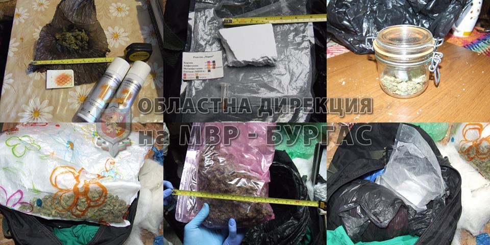 В резултат на съвместните действия на служители от отдел Криминална полиция при ОДМВР – Бургас и сектор Специализирани полицейски сили при ОДМВР – Бургас е задържан 33-годишен криминално проявен бургазлия, в чийто дом, разположен в м.с. "Върли бряг", са намерени и иззети : килограм суха тревна масса /канабис/, множество шишета, съдържащи течност с остра миризма, червен фосфор, ел. котлон със стъклени съдове за производството на метамфетамин и ел. везна. Бургазлията е задържан за срок от едно денонощие, а по случая е образувано досъдебно производство.