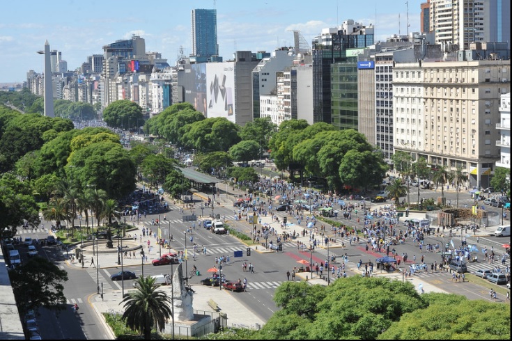 Носейки знамена, шапки и фланелки в синьо и бяло, феновете на футбола заляха центъра на Буенос Айрес секунди след крайния съдийски сигнал. Това всъщност бе гледката в цяла Аржентина, която получава възможност за целодневно парти.