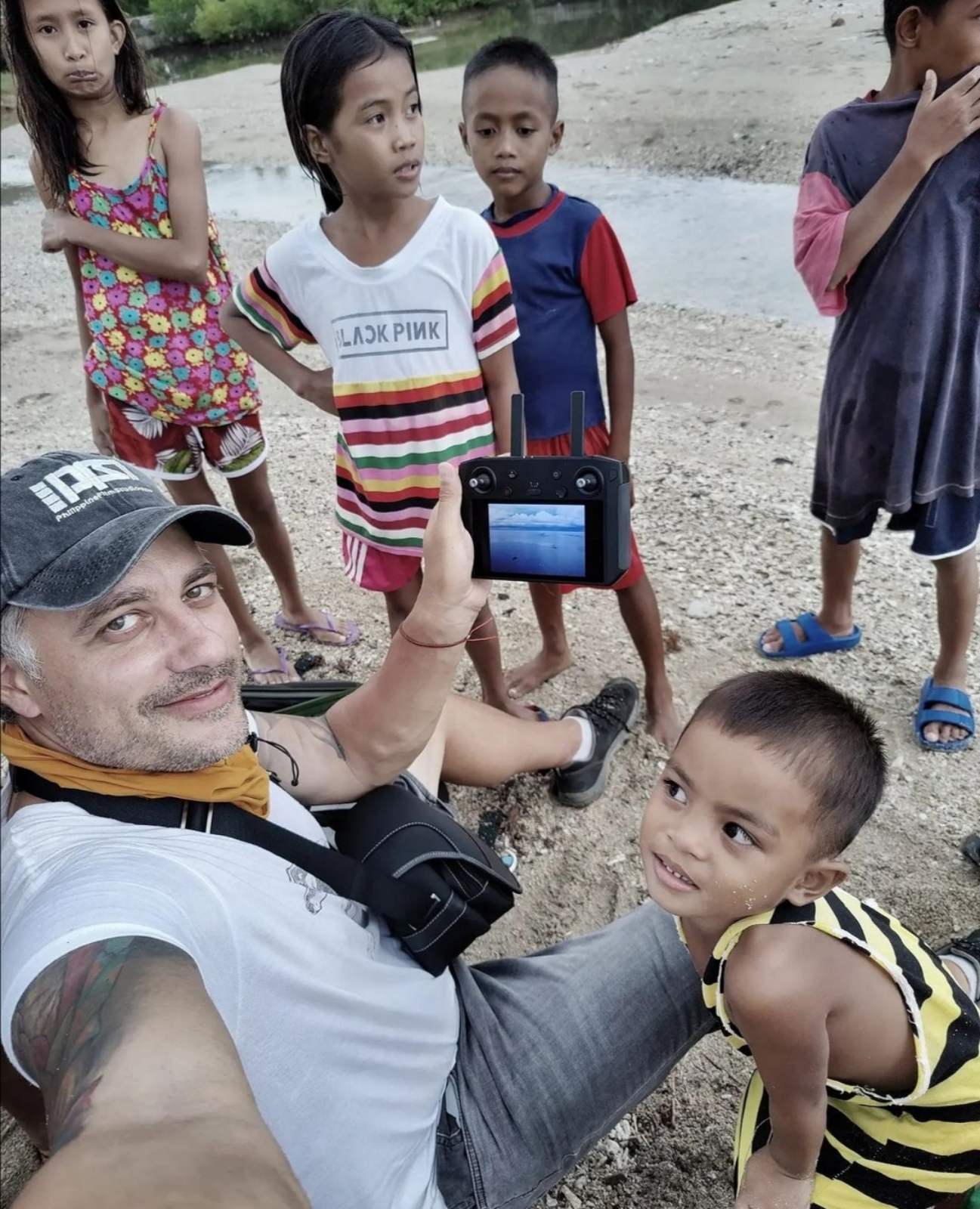 Въоръжен с няколко фотоапарата и дрон, звездата от "Откраднат живот" се превърна в сензация сред жадните за високите технолигии на модерния свят малки филипинчета, видя ПИК в социалните му мрежи.