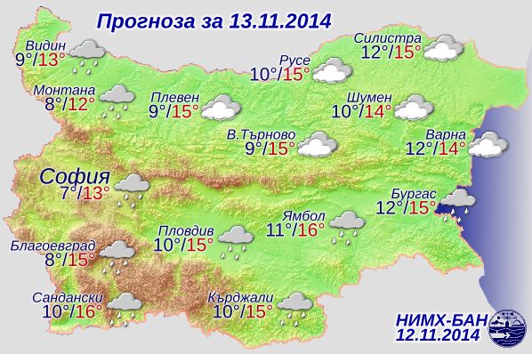 Такава е прогнозата за времето на Националния институт по метеорология и хидрология (НИМХ) към БАН, съобщи за ПИК дежурният синоптик Красимир Стоев.