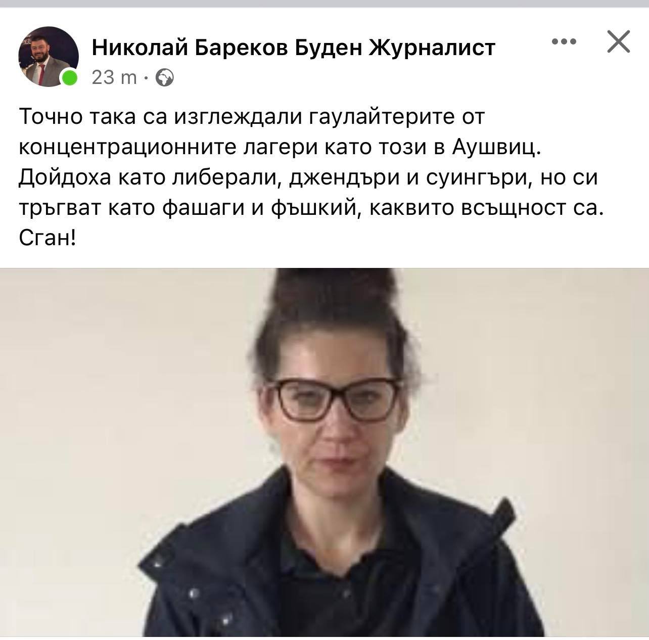 "Дойдоха като либерали, джендъри и суингъри, но си тръгват като фашаги." Това написа Николай Бареков във Фейсбук по адрес на Харвардите. За илюстрация той е поставил снимка на вицето Калина Константинова.