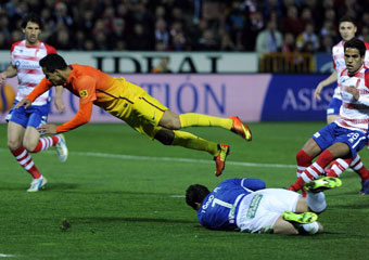 В 38-ата се появи първият голям шанс за Меси след пас на Тиаго Алкантара, но Тоньо успя да скъси ъгъла и изби удара на аржентинеца. До края на полувремето Виктор Валдес изтръпна още веднъж след центриране отдясно на втората греда, но опасността отмина. В 45-ата Тиаго сбърка връщане назад, но Игало не се ориентира добре.