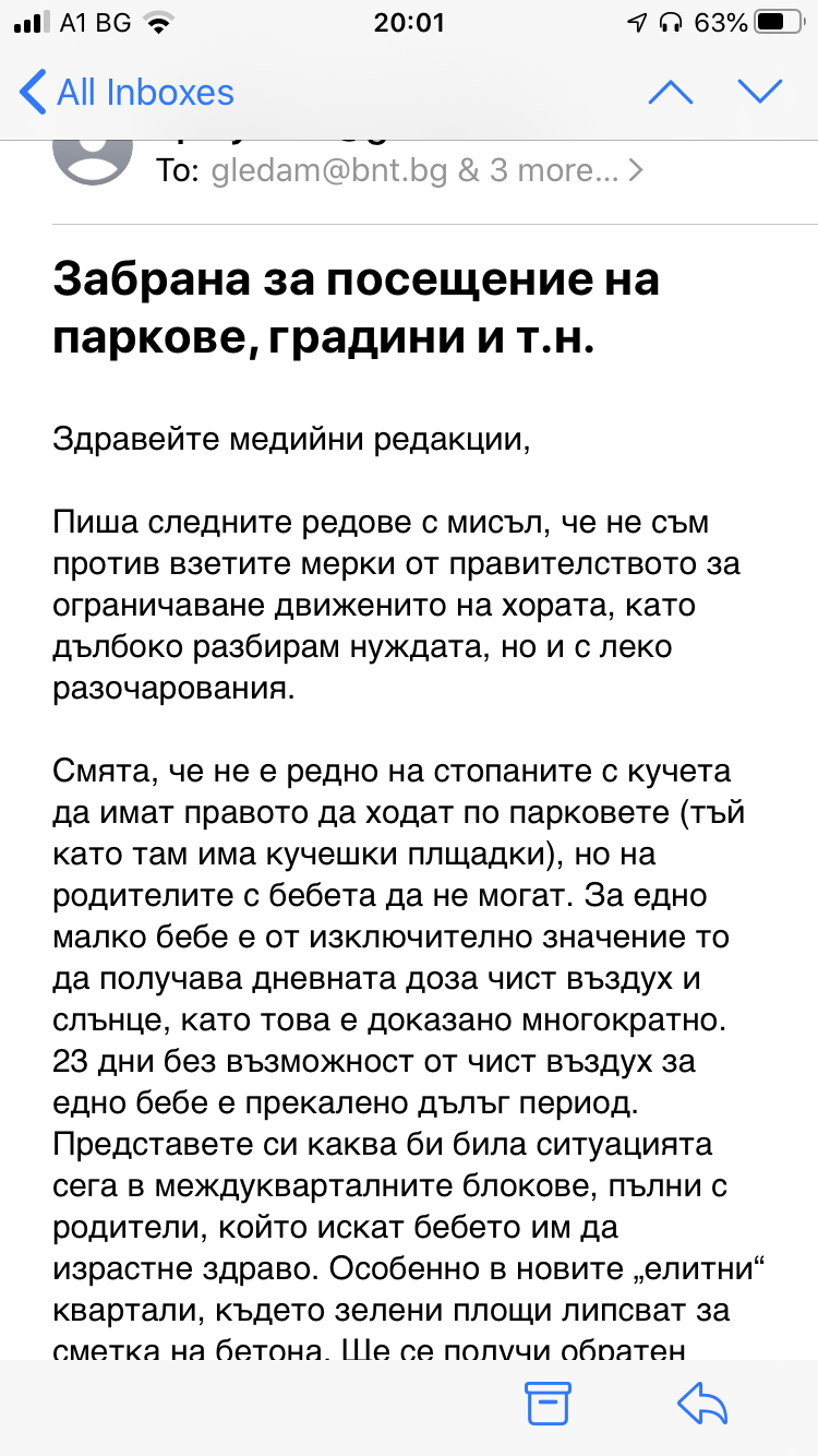 Пиша следните редове с мисъл, че не съм против взетите мерки от правителството за ограничаване движенито на хората, като дълбоко разбирам нуждата, но и с леко разочарования.