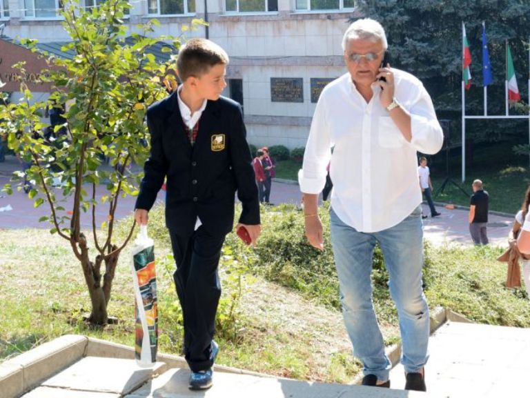 Бившият министър на икономиката, енергетиката и туризма в първия кабинет на Борисов - Делян Добрев, изпроводи ученика си, докато носеше малкото му братче на ръце.