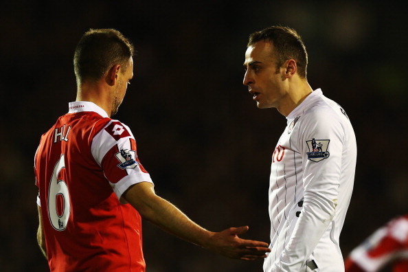 Десетина минути преди това българинът беше провокиран от грубо нарушение на Клинт Хил срещу съотборника му Йоргос Карагунис. Бербатов се нахвърли на Хил и си размени остри реплики с бранителя, който получи жълт картон за проявата си.