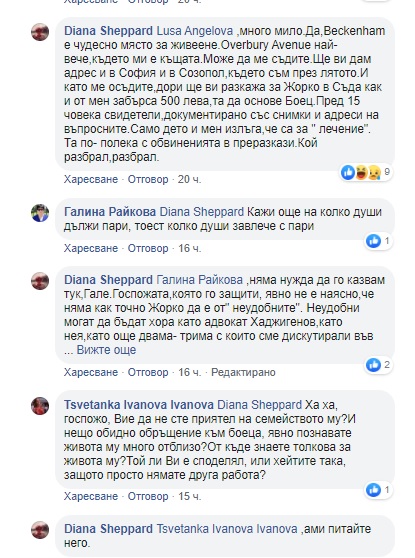 Част от кликата на Хаджигенов опитва да го брани, но Диана Шепърд е категорична, че е готова да докаже в съда твърденията си, както и още куп скандални подробности за лъжите и аферите му.