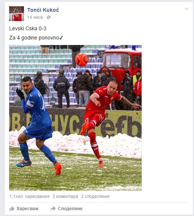 Тончи пусна снимка в профила си във "Фейсбук" от победа номер 6 на ЦСКА срещу "Левски" с 3:0 на 25.10.2014-та година.