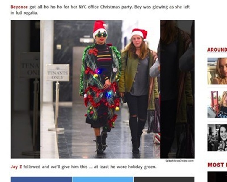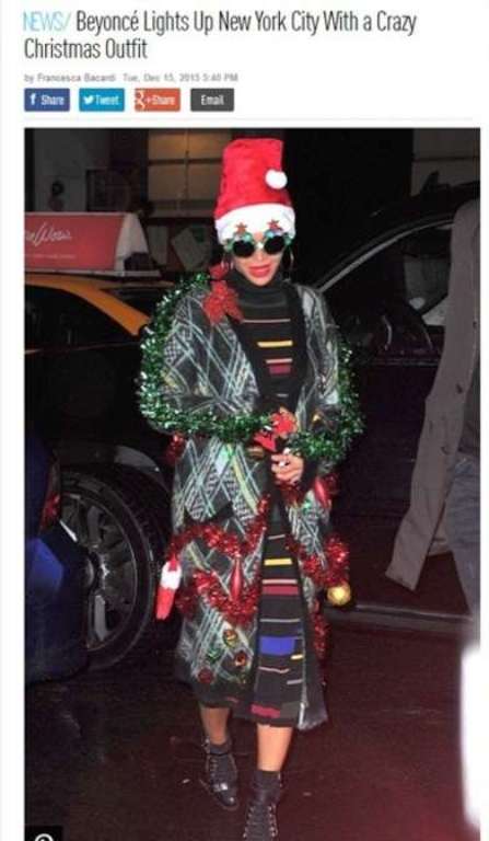 Половинката на рапъраДжейЗи бе облечена с жилетка, върху която има гирлянди и коледни светещи играчки.