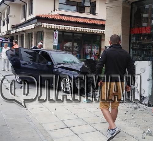 БМВ се вряза в магазин в Слънчев бряг (снимки)