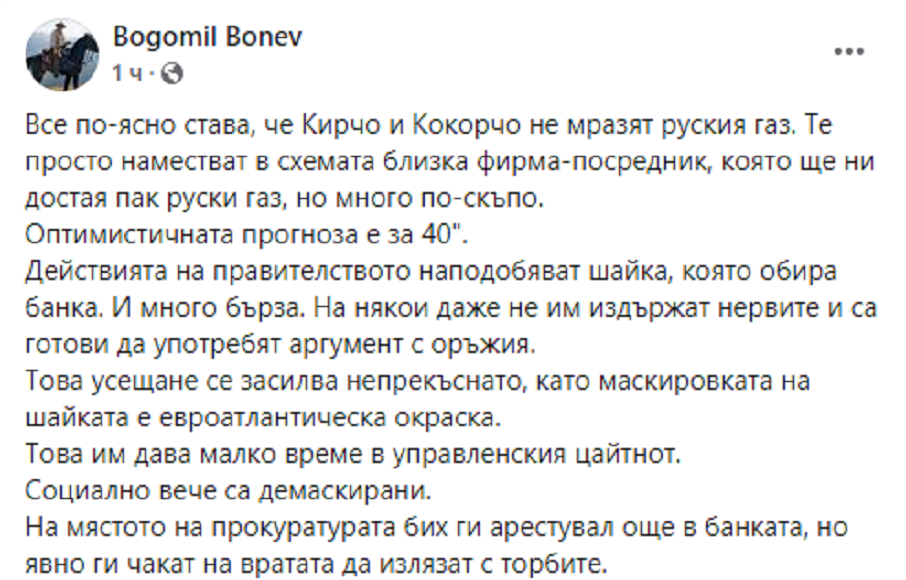 Богомил Бонев: Прокуратурата да арестува Кирчо и Кокорчо! Те са като шайка, която обира банка