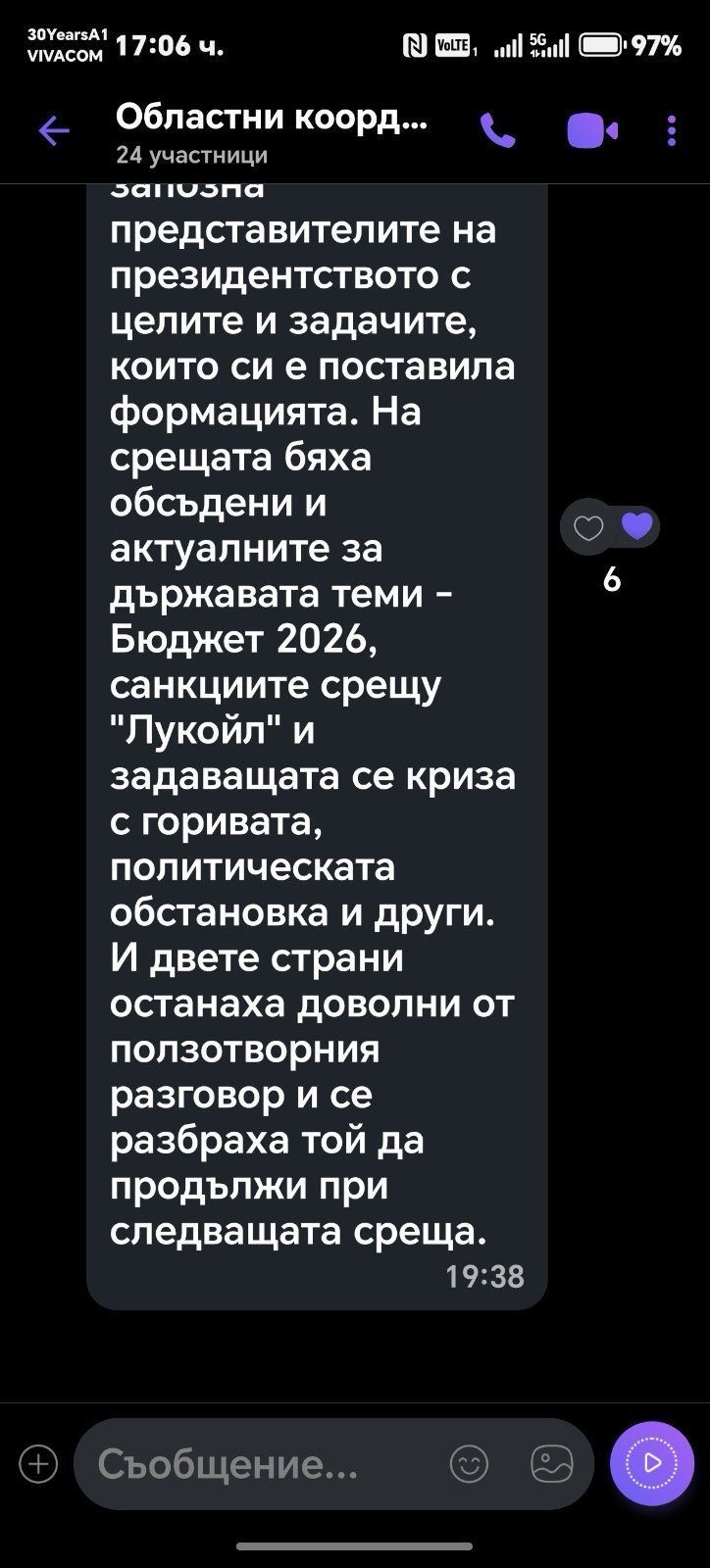 Тя обаче разполага с вътрешен чат на 24-та областни координатори на "Трети март". Ето какво четем в него: