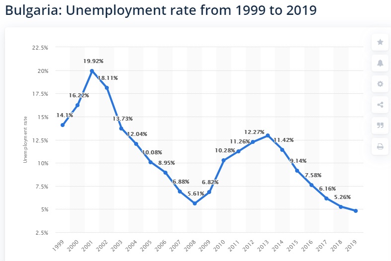 На таблиците по-долу виждате увеличението на Брутния вътрешен продукт, както и нивата на безработица в България - рекордно ниски за годините на прехода.