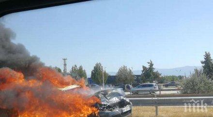 Два от автомобилите са с турска регистрация, а другите два са с българска. Едно от превозните средства е напълно изгоряло. Причинени са материални щети.