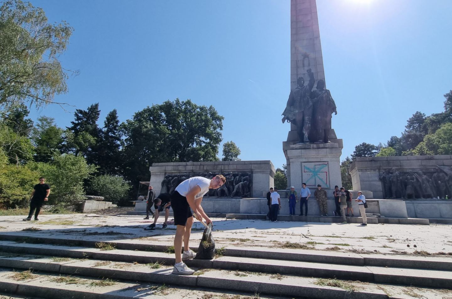 "Преди по-малко от 3 седмици призовахме кмета да предприеме бързи и адекватни действия за почистване на осквернената за пореден път Братска могила. Поставихме и срок - до 1 септември. Той остана глух и сляп за фашистките изстъпления в центъра на София, коментира Иван Таков. - Затова решихме днес, ден преди празничния Девети септември, да свършим работата на Столична община и да почистим монумента и пространството около него".