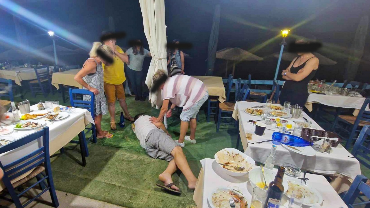 Първата помощ оказал български лекар, който летувал в курорта. Собственикът на таверната го потърсил и докторът бързо пристигнал с медицинската си чанта, оказал помощ на падналия мъж, който след това се съвзел.