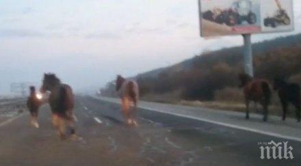 ПЪЛЕН ШАШ! Вместо коли по магистрала "Тракия" препускат... коне