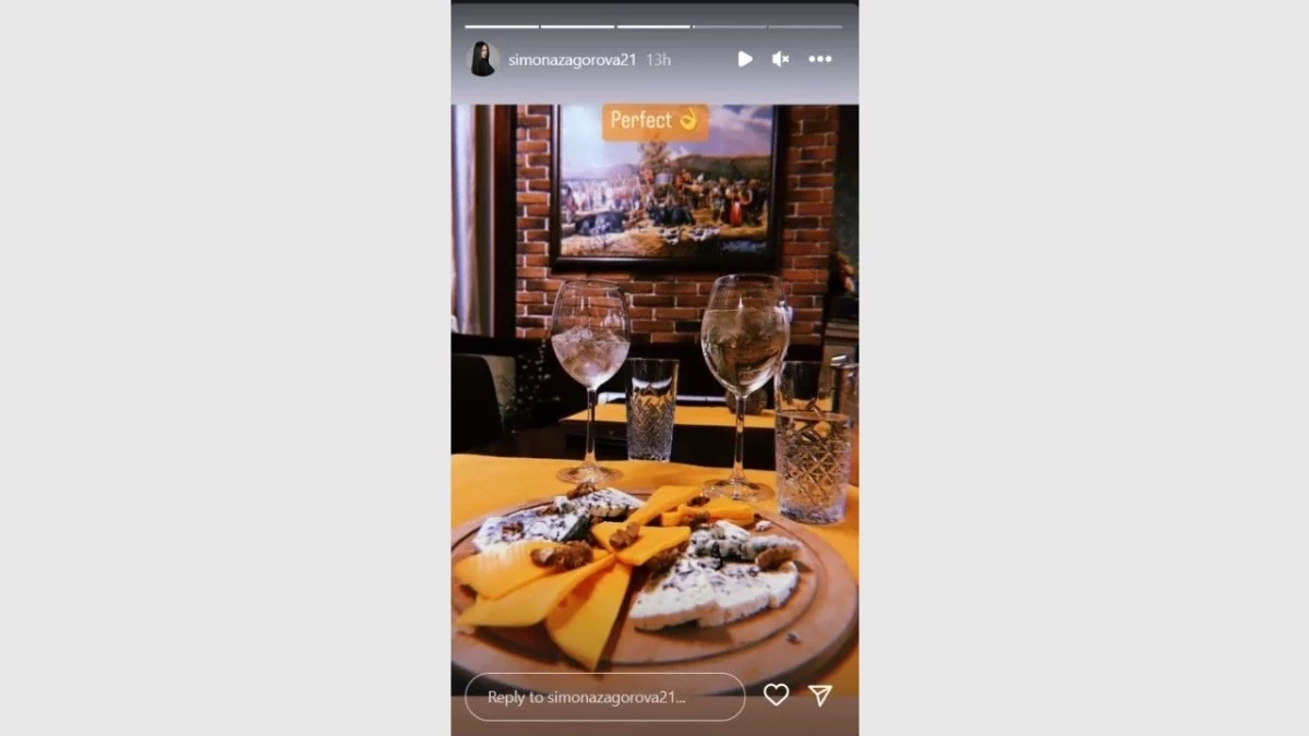 Виното е бяло, мезето е класно, а чашите са две. Едва ли Симона пие от две чаши все пак! За съжаление обаче певицата не качи повече снимки или видеа от вечерта, с които да разберем какво се е случило.