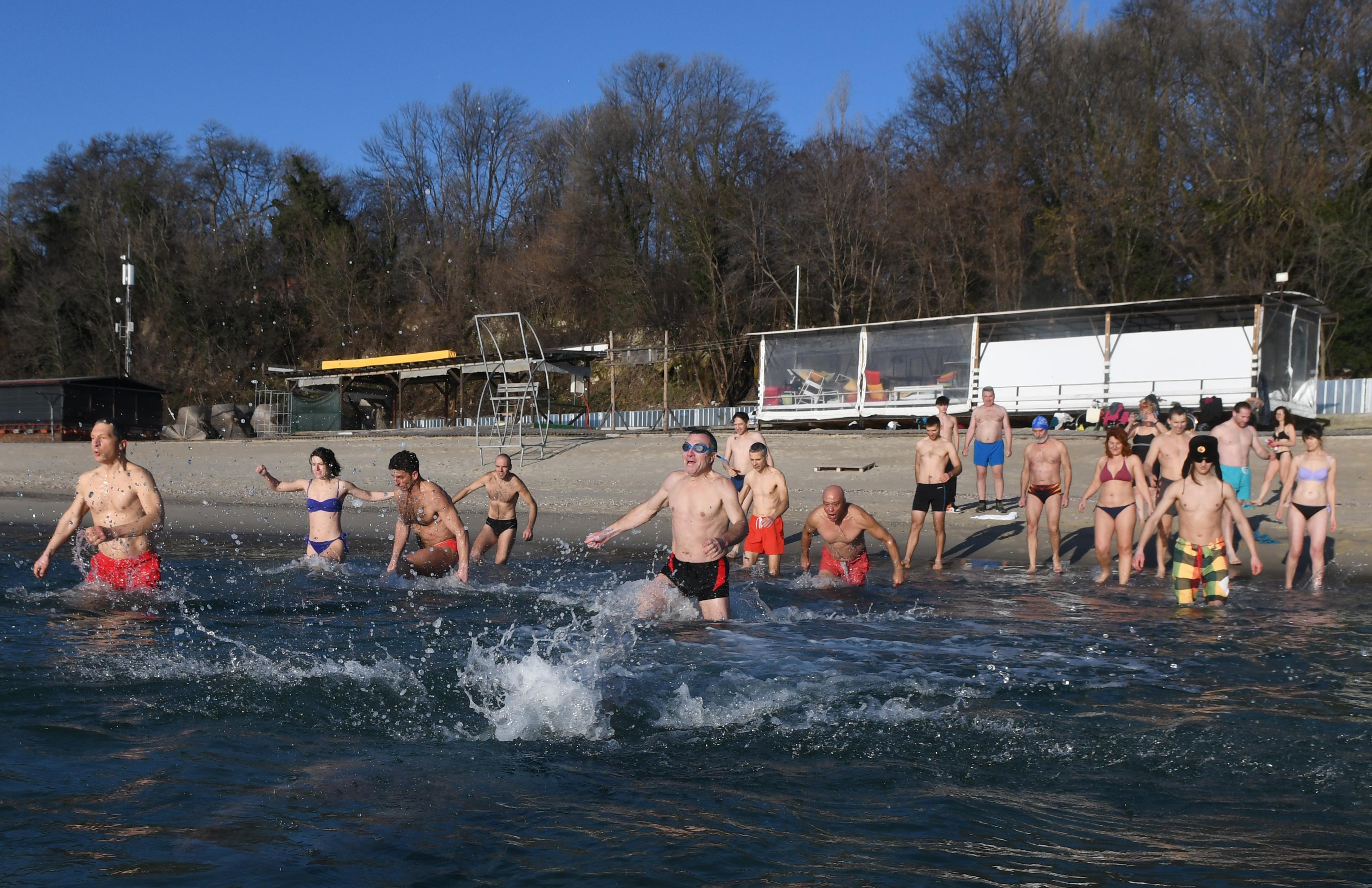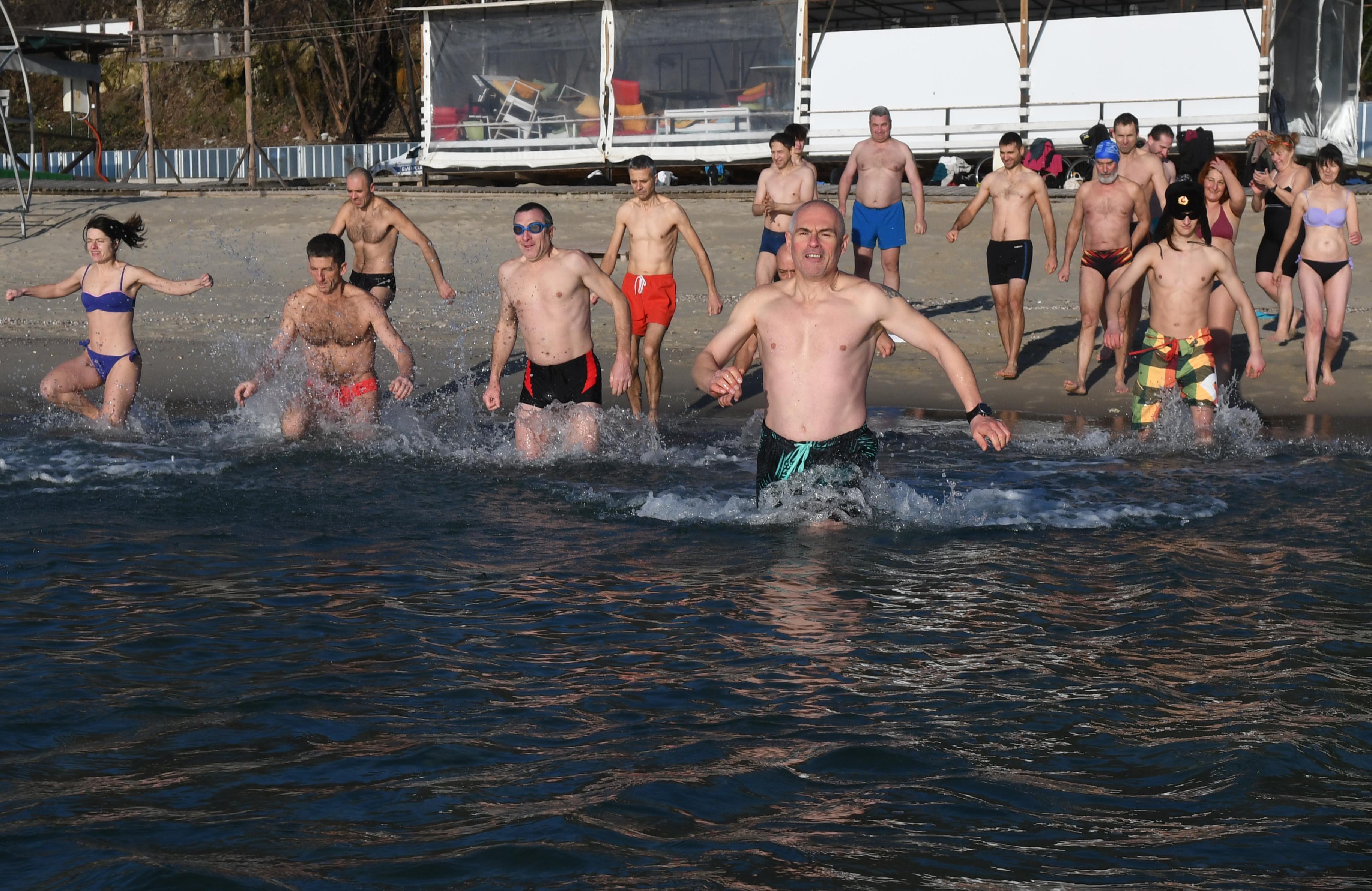 Това влизане в ледените води ни дава настроение, бодрост, това е една адреналинова инжекция и чувство за лекота, подчертаха хората, събрали се днес на плажа в морската столица.