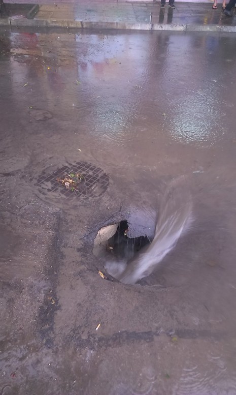 Дупка иззе ролята на шахта по време на пороя в събота, пише Петел.бг.