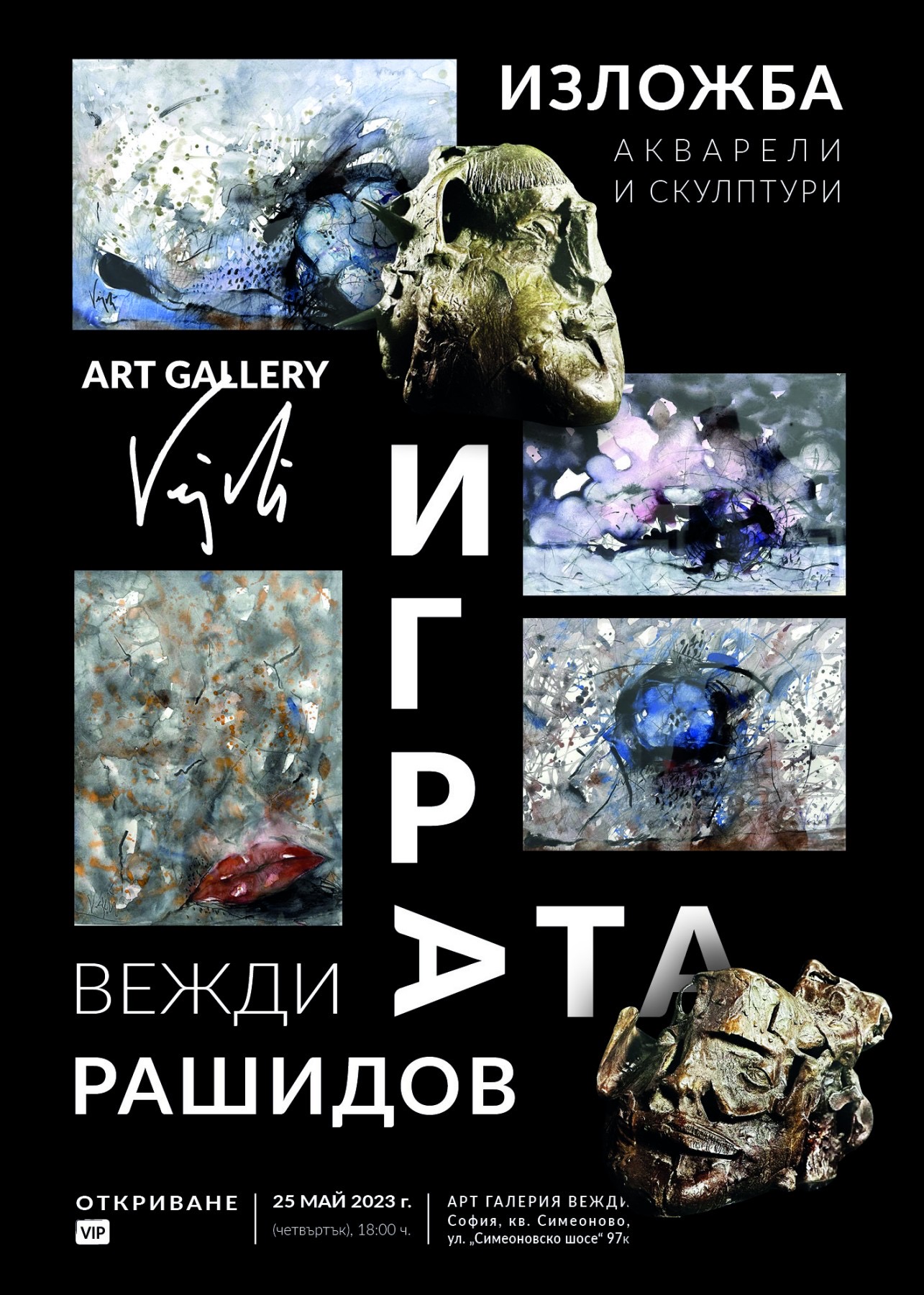 Вежди Рашидов подреди изложба с най-новите си акварели и скулптури. Откриването е на 25 май – четвъртък, в 18 часа в Арт галерия Vejdi на ул. „Симеоновско шосе“ 97 к в София. Във ВИП артпространството са експонирани 20 акварела и 4 скулптури на именития творец.