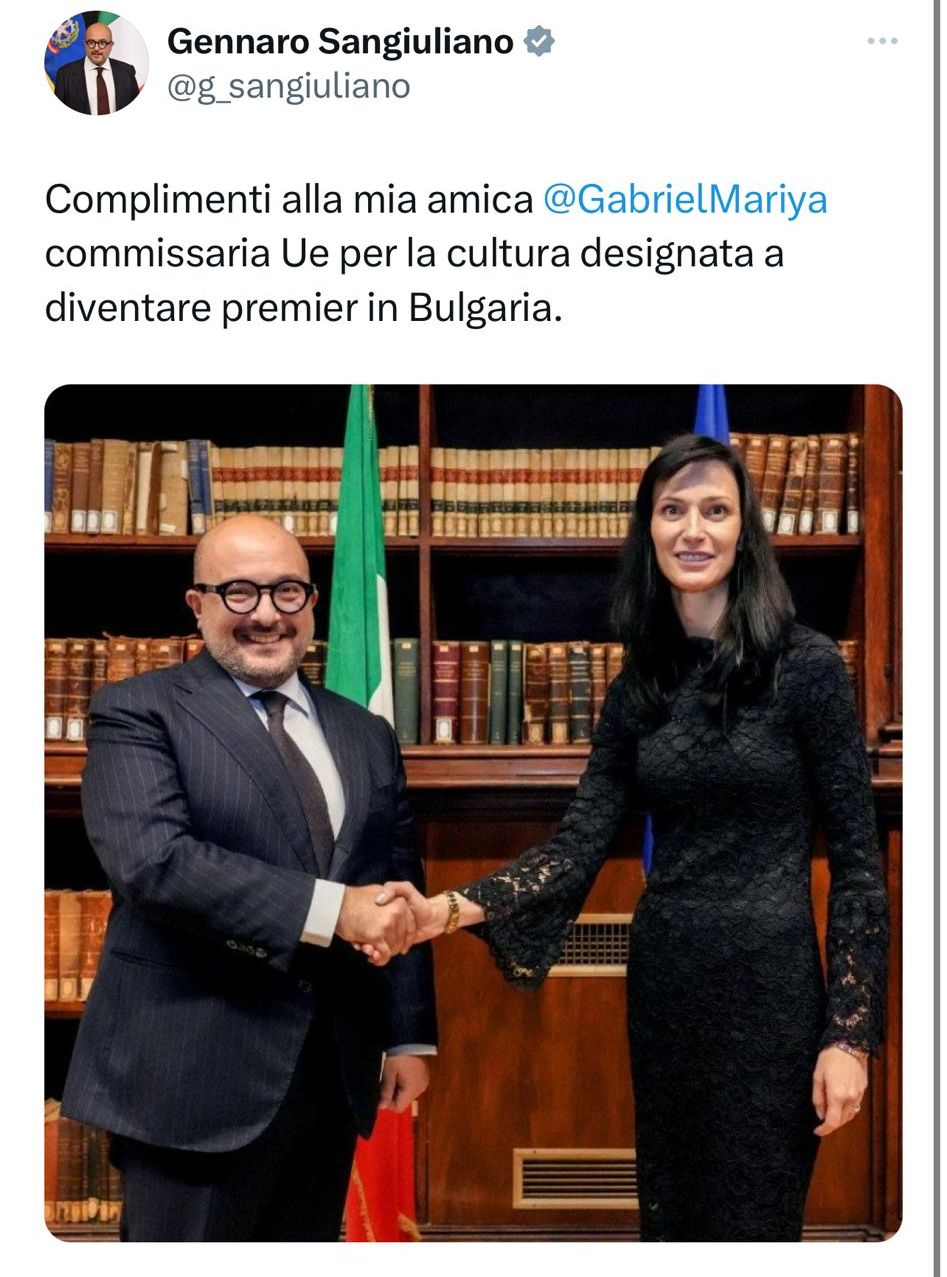 Мария Габриел получи в Туитър поздравление и от министъра на културата на Италия Дженаро Санджулиано.