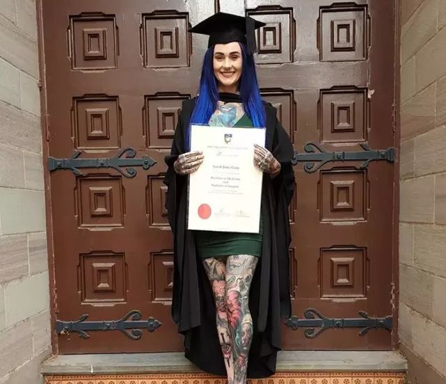 Обилно татуираната лекарка работи като стажант в болница в Аделаида и иска да стане ортопед-хирург.