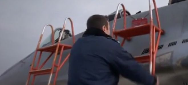 Намираме се в кабината на МИГ-29. Това е инстукторското място. В това, което пилотите наричат спарка. Тук те се подготвят за полетите си. А има още места, свързани с новия държавен глава. Допуснати сме до работното място на командира на 3-та авиобаза. Това е мястото, откъдето той командва. Виждате и малко от интериора. Авиаторите ни имат самочуствие.