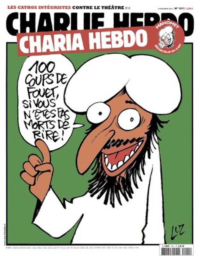 Издателите отбелязват, че "гост-редактор" на броя е самият пророк Мохамед, която е заплашил със "сто камшика, ако не умрете от смях". В деня, когато "Шария Ебдо" стига до вестникарските щандове, в редакцията избухва запалителна бомба. Броят бива разпродаден за часове, а някои френски политици се изказват в защита на правото на мнение на вестника.