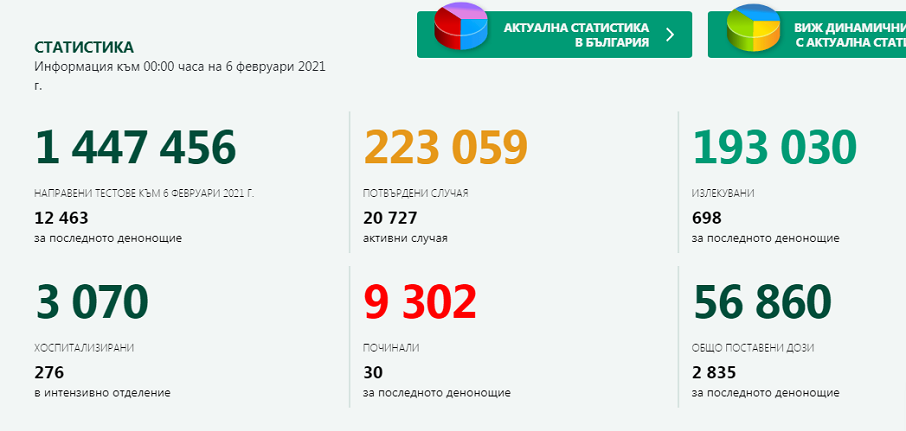 910 са заразените за последните 24 часа у нас при направени 12 463 теста. Така общият брой заразени от първия регистриран случай на 8 март 2020 г., вече стана 223 059. Активните случаи пък са 20 727.
