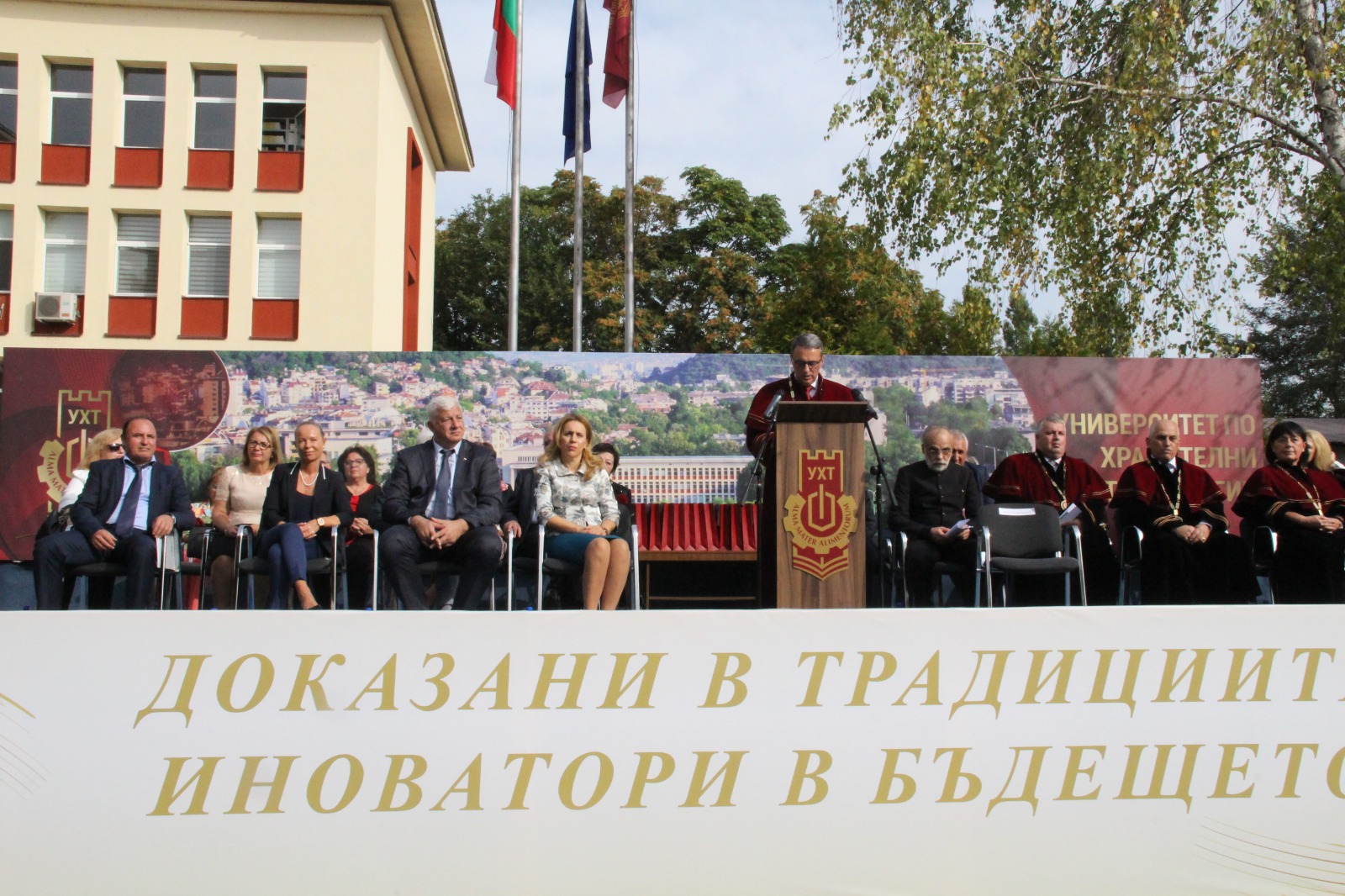 Ректорът на университета Пламен Моллов заяви, че в годините от създаването си учебното заведение се утвърди като авторитетна школа. Силният интерес към нашите специалности ни дават престиж за образователен лидер. Надявам се и ще се радвам нашите студенти един ден да създадат свои световни брандове, коментира още той. От тази година въвеждаме модулно обучение, а УХТ работи и по съвместни образователни програми с чужди университети – от Северна Македония, Франция, Гърция, Нидерландия и др., информира още ректорът.