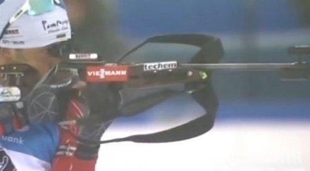 Илиев пропусна две от десетте мишени и остана на 1:00.5 минута зад победителя Матвей Елисеев от Русия. Синапов допусна една грешка във втората си стрелба и с пасив от 1:05.7 минута завърши на 16-а позиция.