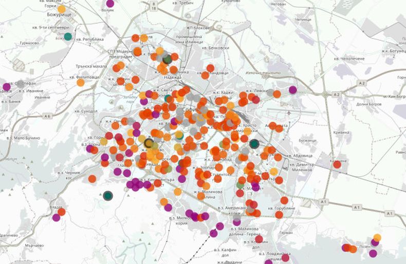 Справка на сайта airbg.info показва, че въздухът е най-замърсен в Централна и Югозападна България. Според данните на сайта завишени стойности на ФПЧ има в почти всички столични квартали.