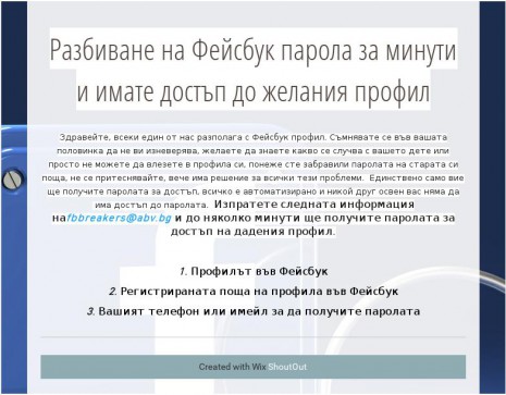 Предложение за разбиване паролата на фейсбук се разпространява в интернет, сигнализира читателка . Тя е получила е-мейл, който я е притеснил, пише "Петел".