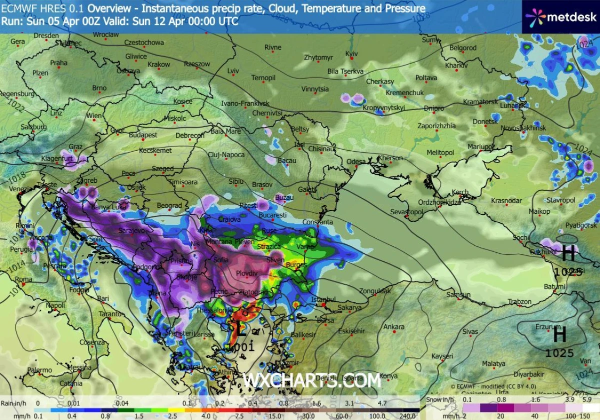 ВРЕМЕТО СТАВА ОПАСНО: До дни ужасен циклон удря България с много дъжд и сняг (КАРТА)