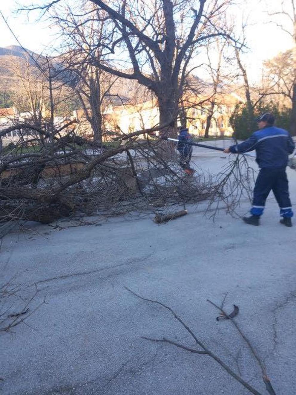 Приоритетно се премахват паднали или изкоренени дървета, надвиснали покривни конструкции, керемиди и предмети, които застрашават живота и здравето на преминаващите.