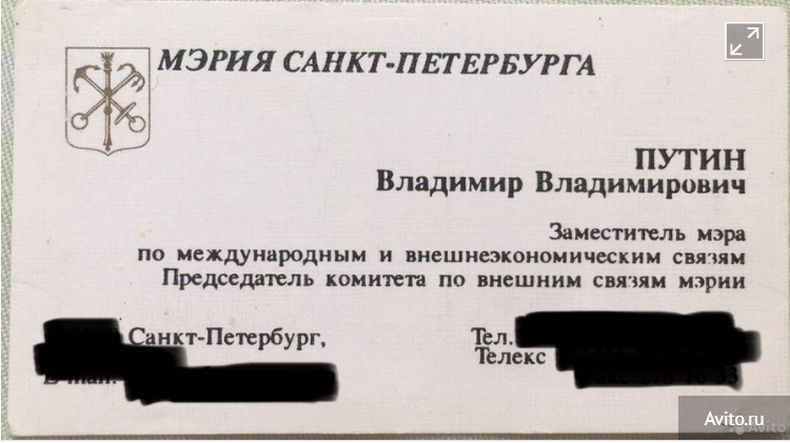 Визитка е от годините, в които Путин е работил в градската администрация на Санкт Петербург като заместник-кмет по международни и външноикономически отношения.